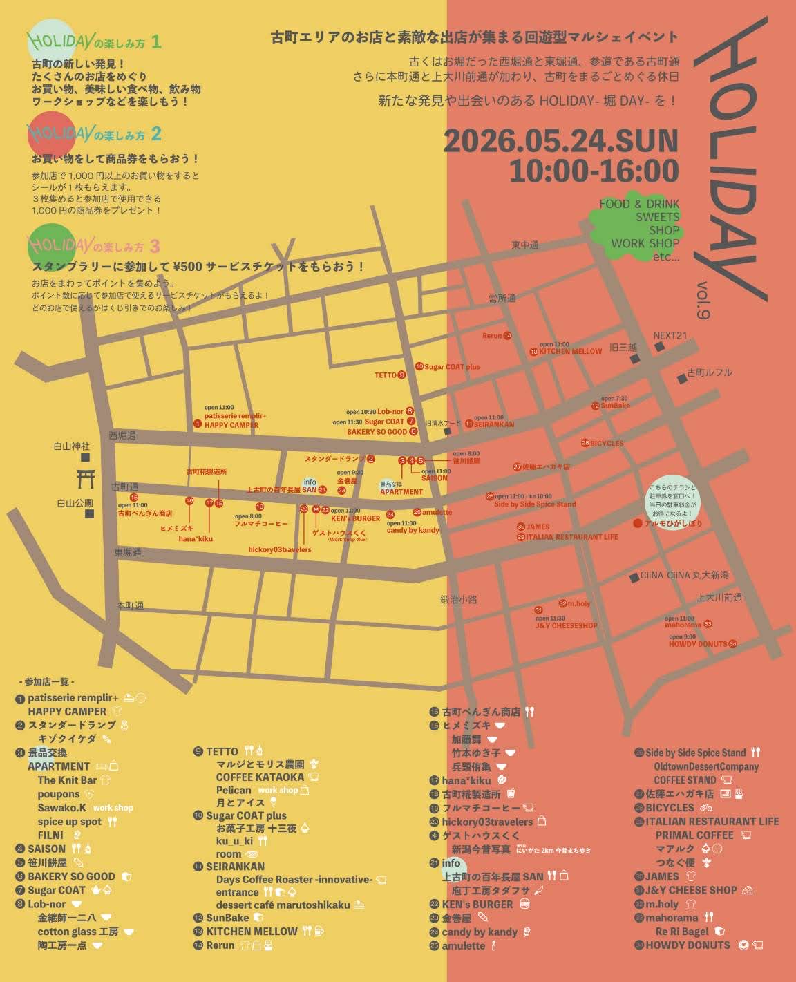 新潟・古町エリアのお店と、愉快で素敵な出店者が集まる回遊型マルシェイベント「HOLIDAY – 堀DAY -」
